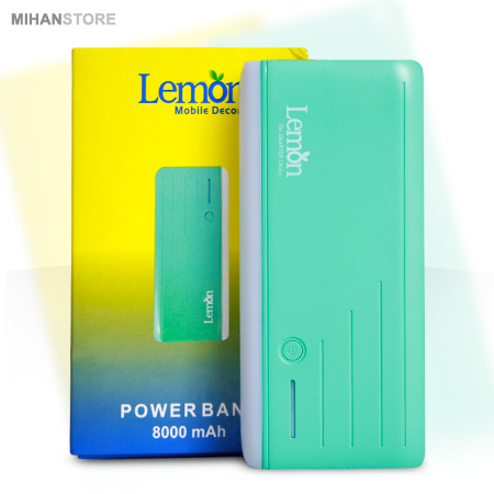 پاوربانک لمون 8000 با ظرفیت اسمی 8000 میلی‌آمپرساعت محصول برند «Lemon» است. این محصول با دو درگاه خروجی امکان شارژ هم‌زمان دستگاه‌هایتان را به شما می‌دهد. باتری این شارژر از نوع لیتیومی است و ولتاژ ورودی و خروجی این شارژر همراه 5 ولت است. بنابراین اگر دستگاه‌های 5 ولتی مانند گوشی، تبلت یا دوربین دیجیتال یا پخش‌کننده همراه دچار مشکل کمبود شارژ شد و به برق شهری یا خودرو دسترسی نداشتید، این پاور بانک مشکل شما را حل می‌کند. شدت‌جریان ورودی آن 1.2 آمپر است و درمجموع 2.1 آمپر می‌توان از آن خروجی گرفت. با این شدت‌جریان 2.1 که برای تبلت‌ها مناسب است، گوشی‌های موبایل سریع‌تر از حالت معمولی شارژ می‌شوند. از روی نشانگر LED آن می‌توان میزان شارژ باقی‌مانده را فهمید و یک چراغ LED بزرگ روی آن وجود دارد. این چراغ هم مانند چراغ‌قوه عمل می‌کند هم می‌تواند حالت هشداردهنده SOS داشته باشد. علاوه‌براین می‌توانید چشمک‌زن قرمز و آبی را نیز فعال کنید. بدنه‌ی آن از پلی کربنات و پلاستیک ABS ساخته‌شده است و جای خط و خش به‌آسانی روی آن نمی‌افتد.