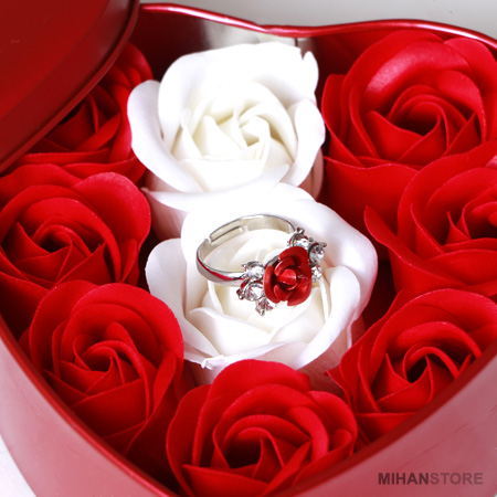 انتخاب هدیه به مناسبت روز عشق یا تولد کمی مشکل است. برای تهیه هدیه باید به دنبال چیزی در خور طرف مقابلتان باشید. هدیه های روز عشق به صورت نمادی از عشق علاقه هستند که بیشتر اوقات به صورت پکیج وجود دارند. پکیج کادویی انگشتر و گل عطری طرح Love نمونه ای از هدیه ای خاص است که با در برگرفتن یک انگشتر زیبا و گل های عطری برای کادو دادن به عشقتان انتخاب خوبی است. پکیج کادویی انگشتر و گل عطری طرح Love شامل یک انگشتر طرح گل رز که فری سایز می باشد و 8 گل صابونی عطری که بدلیل قرارگیری داخل جعبه همیشه عطر خاصی به محصول می بخشد و با هربار بوییدن یادآور خاطرات زیبای روزی زیبا برای شماست.