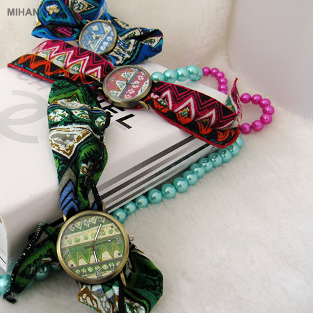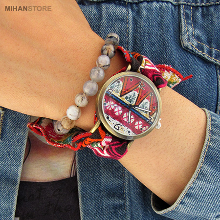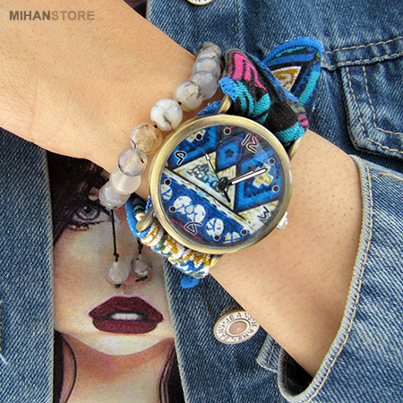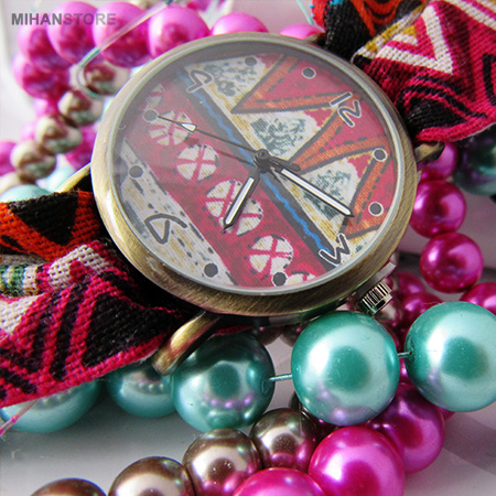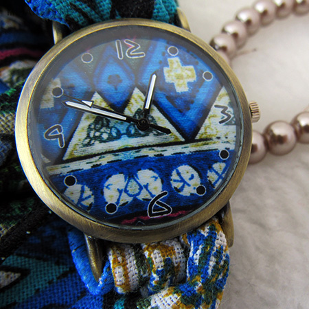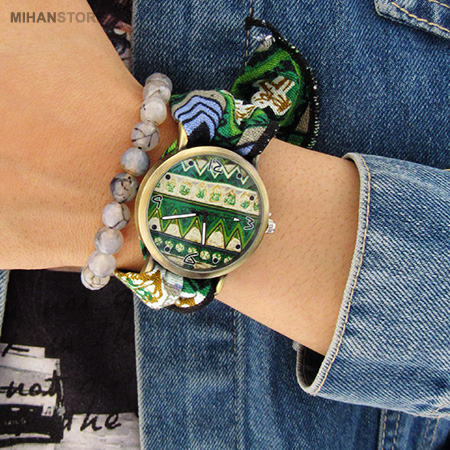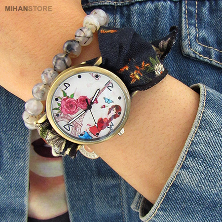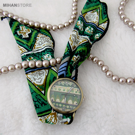 این ساعت دارای بند پارچه‌ای با طرح‌های بسیار متنوع و رنگارنگ است که به خاطر مدل و رنگ‌بندی بسیار زیبا می تواند به یکی از ساعت‌های محبوب شما تبدیل شود. بند این ساعت بسیار متفاوت از ساعت‌های موجود در بازار است و به صورت پارچه‌ای رنگی است که به دور دست شما گره می‌خورد و جلوه‌ای متفاوت و خاص از زیبایی به دستان شما می‌بخشد. برای همه ما پیش آمده که با لباس های خود بخواهیم ساعتی رنگ لباس خود داشته باشیم. ما امروز این امکان را برای شما فراهم آورده ایم. این ساعت در رنگ ها و طرح های گلدار زیبا و متنوع و با وزنی بسیار سبک و دارای بند پارچه ای طرح دار یک ساعت هنری تمام عیار است. کاربرد و استفاده این ساعت به صورت روزانه است و برای استایل های متفاوت کاملا مطابق سلیقه همه افراد میباشد.طراحی روی صفحه ساعت با پارچه منقش به طرحهای خلاقانه بسیار هماهنگ است و ترکیبی چشمنواز را به وجود آورده است ، بانوان شیک پوش ایرانی میتوانند این ساعت مد روز را با لباس های مجلسی ، اسپرت ، فشن یا روزمره خود ست کنند.
