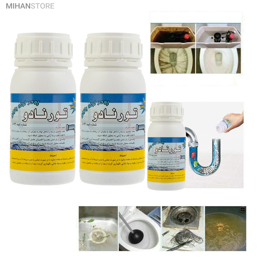 این محصول با قدرت فوق العاده و با فرمولاسیون جدید طی یک واکنش شیمیایی باعث باز شدن سریع لوله های فاضلاب، دستشویی، حمام و آشپزخانه و غیره شده و بوی نامطبوع را از بین می برد و هیچ گونه صدمه ای به لوله ها وارد نمی کند.با شست‌وشوی سبزی‌ها، میوه یا غذا از روی ظروف مقداری جرم درون سیستم فاضلاب و لوله‌کشی قرار خواهد گرفت. با توجه به اینکه جرم درون لوله‌ها بعد از مدتی باعث بسته شدن راه عبور آب خواهد شد، ممکن است با بسته شدن مسیر خروج آب و همچنین افزایش جرم، آسیب‌های متنوعی به سیستم فاضلاب یا حتی لوازم درون منزل زده شود. حتی در بعضی موارد پیش‌آمده که در اثر این مشکل، سقف یا دیوار نیز دچار آسیب شده است. پودر لوله‌بازکن تورنادو با وزن  250گرم برای از بین بردن جرم و مانع بسیار کارساز خواهد بود. پودر لوله‌بازکن تورنادو  را می‌توان با آب به‌صورت محلول استفاده کرد. پودر لوله‌بازکن را کمی درون سیستم فاضلاب ریخته و با اضافه شدن آب گرم به آن، می‌توان مسیر خروج آب را باز کرد. در ادامه با آب سرد می‌توان مسیر را به‌صورت کامل شست‌وشو داد.