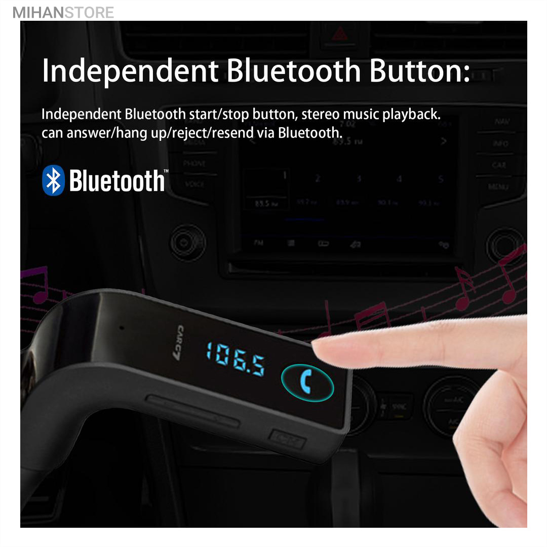 این محصول یک موزیک پلیر و شارژر فندکی است که علاوه بر شارژ تجهیزات گوناگون از طریق اتصال USB، امکان اتصال بیسیم به سیستم پخش خودرو و پخش موزیک های ذخیره شده در حافظۀ متصل شده به آن سیستم را داراست.این پلیر قابلیت پخش موزیک از روی فلش مموری های USB، کارت حافظه های MicroSD را نیز دارد. این موزیک پلیر همچنین قادر است از طریق بلوتوث به گوشی موبایل وصل شده و از طرف دیگر بوسیله بخش اف ام ترانسمیتر به سیستم پخش خودرو متصل شده و موزیک های موجود در حافظۀ گوشی موبایل را از رادیوی خودرو پخش کند. در صورت دریافت تماس ورودی در حین ارتباط بلوتوثی بین گوشی موبایل و سیستم پخش خودرو، موزیک به صورت خودکار قطع شده و تماس تلفنی در حالت اسپیکر برقرار خواهد شد؛ با پایان تماس تلفنی پخش موزیک به طور خودکار ادامه خواهد یافت.این موزیک پلیر از فرمت های صوتی MP3، WMA، MAV و FLV پشتیبانی کرده و دارای یک صفحۀ نمایش LED است. محصول فوق مجهز به فناوریCVC  بوده و توانایی حذف اِکو و نیز کاهش نویز را دارد.Car G7 یک FM player با گیرنده بلوتوثی میباشد که قابلیت پخش موزیک از طریق بلوتوث و USB را داراست و همچنین از رادیو FM نیز پشتیبانی میکند.
