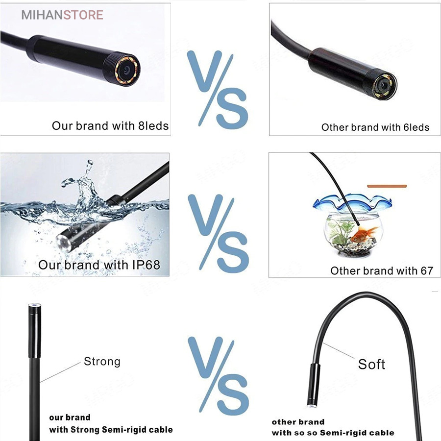 دوربین آندوسکوپ ضدآب (استاندارد IP67) با قطر لنز 7mm و رزولیشن 480x640، قابلیت اتصال به کامپیوتر و گوشی های اندروید معمولی (برای اتصال به موبایل های اندروید تایپ C نیاز به تبدیل دارید) و امکان عکس برداری ، فیلم برداری توسط نرم افزار را خواهید داشت. به وسیله دوربین اندوسکوپی کابل دار می تواند جاهایی که دسترسی به آن ها میسر نیست را در موبایل ، تبلت یا لپ تاپ خود مشاهده کنید.