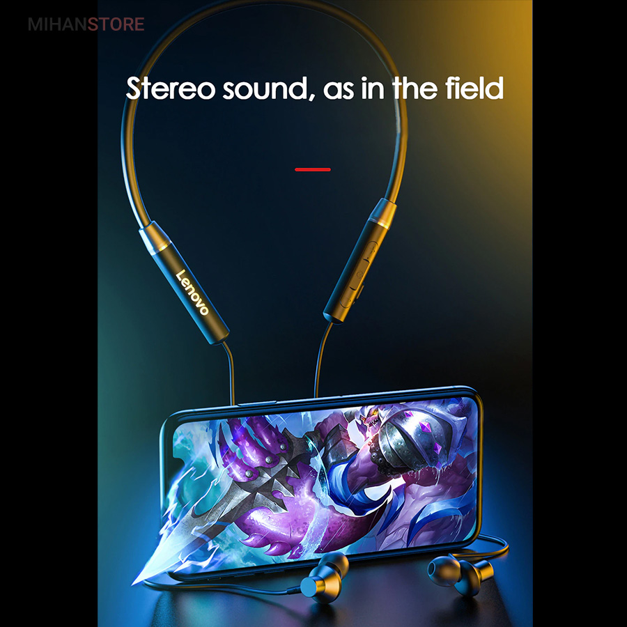 هندزفری بلوتوث گردنی Lenovo یک هندزفری بلوتوث گردنی می‌باشد که دارای کیفیت موسیقی و مکالمه بسیار خوب نسبت به قیمتش می‌باشد. در ضمن بسیار سبک و راحت مناسب استفاده طولانی مدت است. این هدفون گردنی از استاندارد ضد آب IPX5 برخوردار می‌باشد از این‌رو یک هندزفری ورزشی نیز به حساب می‌آید. به معنای دیگر شما می‌توانید از این هندزفری بلوتوث گردنی در ورزش یا زیر بارش باران نیز استفاده کنید. مخصوص علاقه مندان به ورزش که دوست دارند در حال دویدن و پیاده روی به موسیقی نیز گوش دهند. این هدفون به صورتی طراحی شده تا در استفاده‌ دراز مدت گوشتان را اذیت نکند. یکی از دلایل این ویژگی وزن سبک این مدل است. نوار گردنی هدست که در پشت گردن قرار می‌گیرد که باعث می‌شود بدون ایجاد مزاحمت شما به کارهایتان برسید و موسیقی گوش دهید. روکش روی ایرفون‌های هندزفری قابل جدا شدن است. این هدست مجهز به واحد درایور 10 میلی متر برای ایجاد باس عمیق و همچنین آواز نرم است. هدفون بی سیم لنوو دارای تراشه بلوتوثی نسخه 5.0 است که از طریق آن به گوشی، تبلت و یا لپ تاپ متصل می‌شود. برای این مدل بلوتوث نسخه 5.0 در نظر گرفته شده و برد بلوتوث این هدفون تا 10 متر محاسبه شده است. یک باتری 105 میلی آمپرساعت درون این هدست به کار رفته است که با یکبار شارژ می تواند 8 ساعت موزیک پخش کند.  این هدست تا 120 ساعت نیز می‌تواند در حالت آماده به کار باشد. گفتنی است که در هنگام مکالمه هم تا 8 ساعت شارژ را نگه می‌دارد. یکی از دلایلی که این مدل را برای استفاده هنگام ورزش مناسب کرده، گواهی IPX5 است. این گواهی باعث شده تا این مدل نسبت به آب و رطوبت مقاوم باشد. این مدل به گردنی مجهز شده و این ویژگی باعث شده تا این هدفون از گوشتان نیافتد. هندزفری بلوتوث گردنی Lenovo صداهای موسیقی را در صورت استریو بودن برای شما stereo (دو کاناله) پخش می‌کند. در مجموع باید گفت صدای این هندزفری بلوتوث گردنی گرم و لذتبخش است.