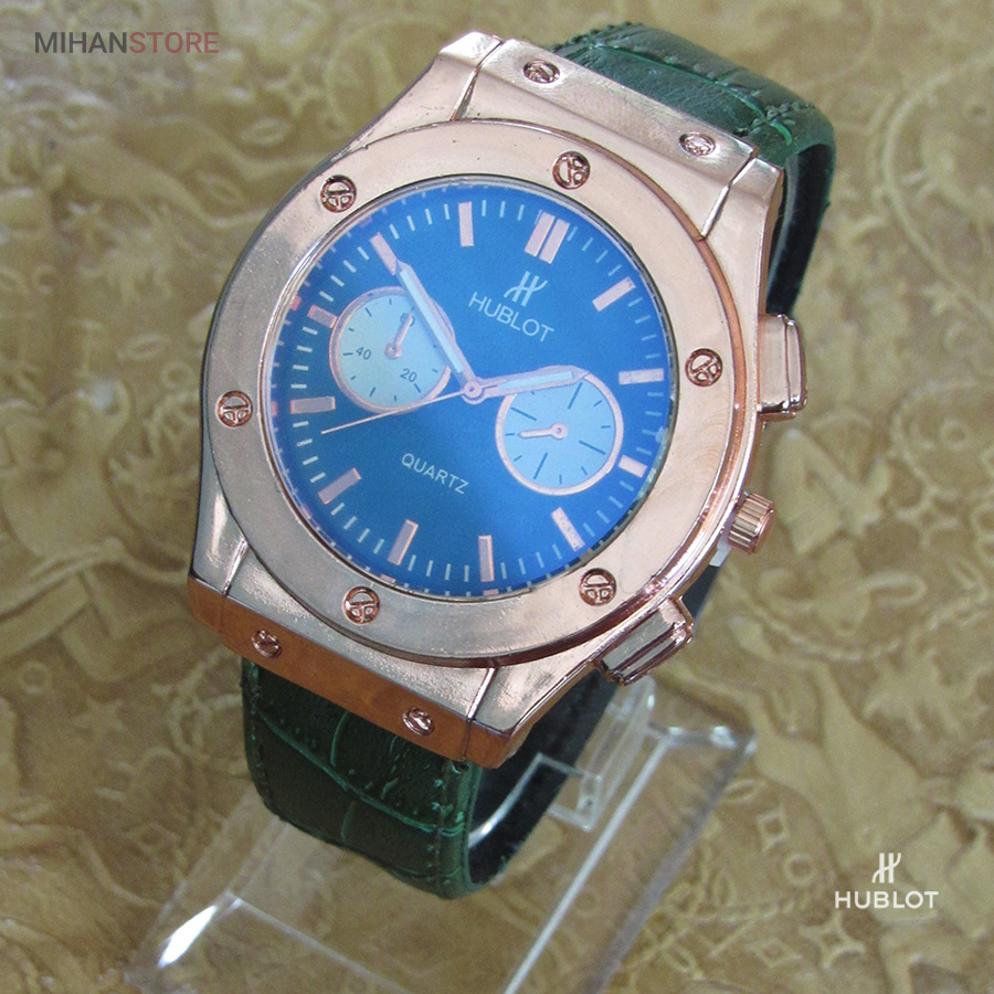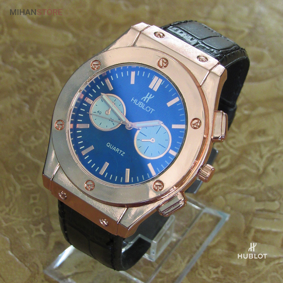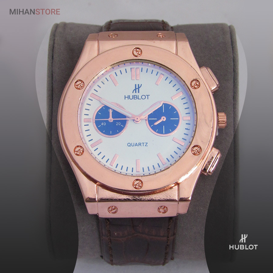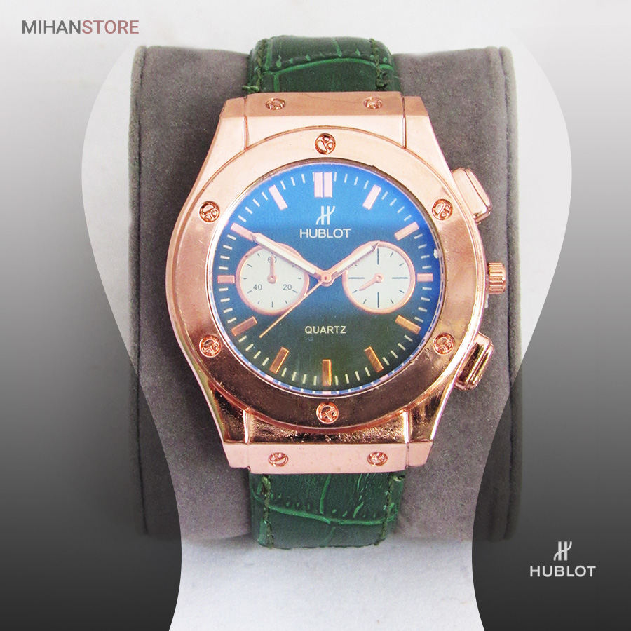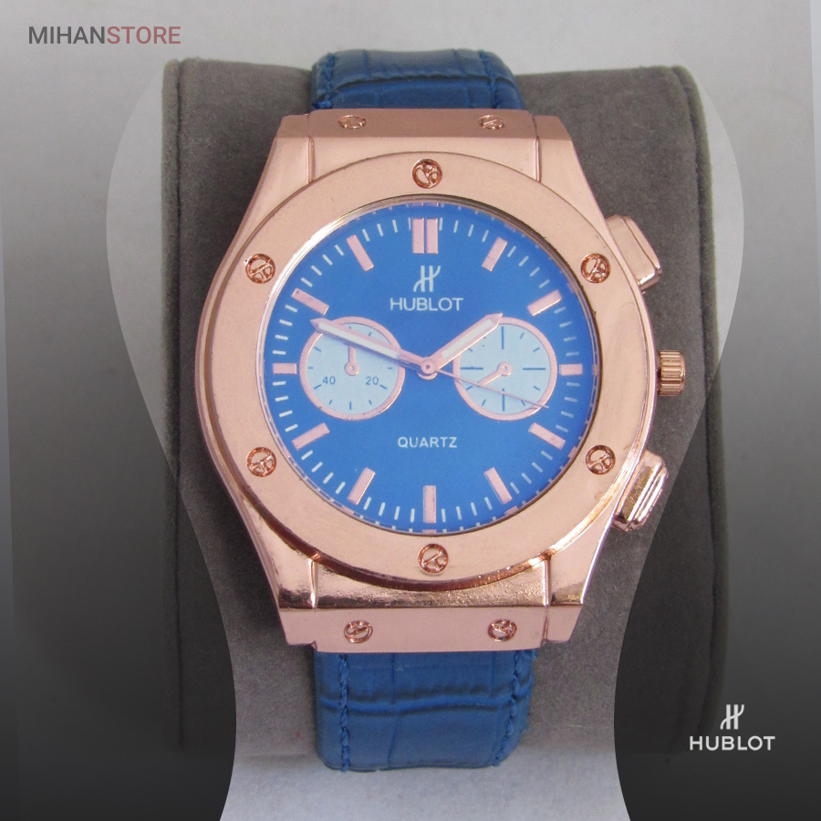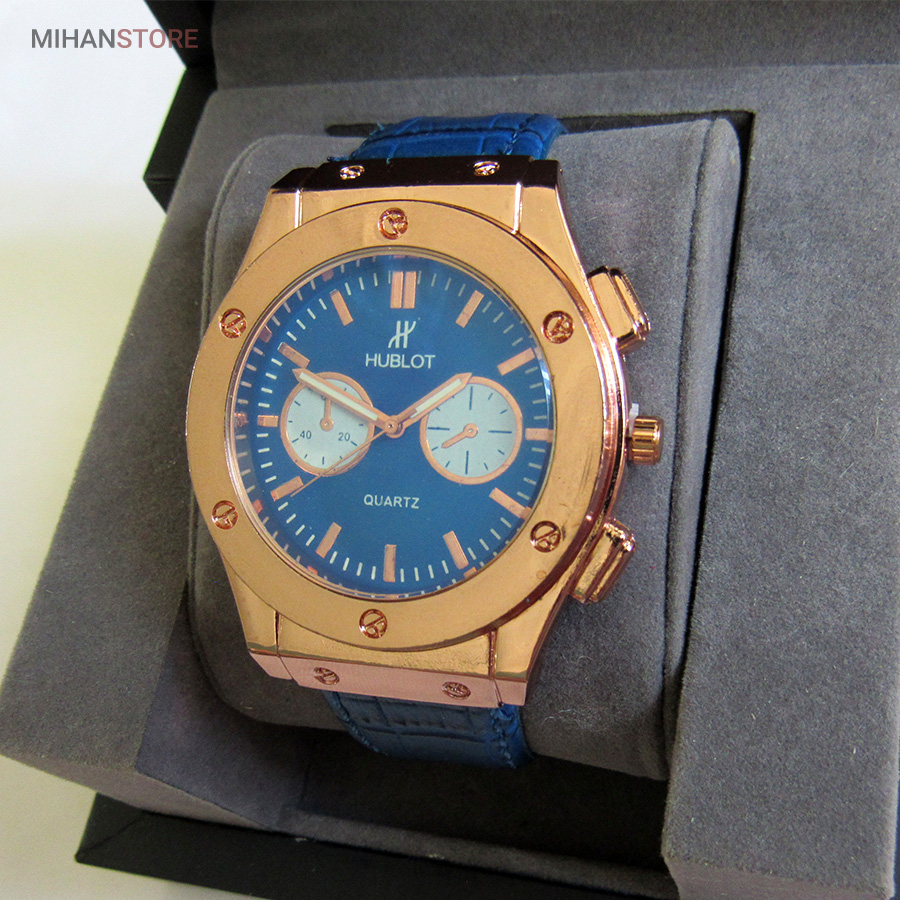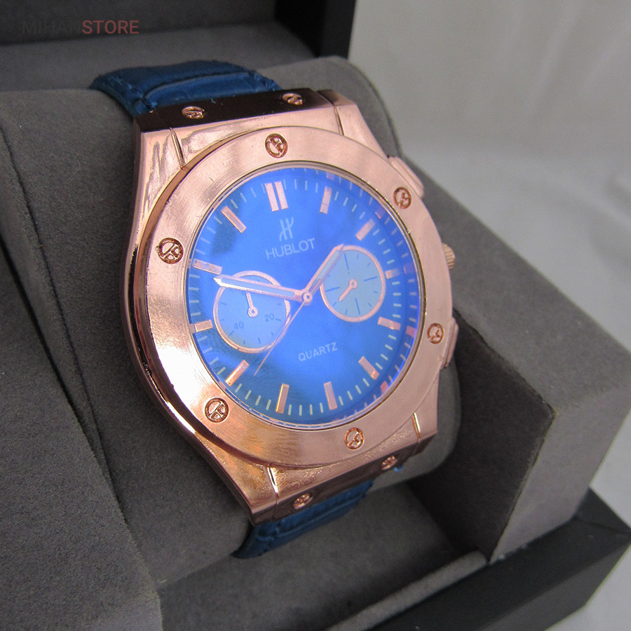 ساعت مچی هابلوت یکی از جدیدترین مدل های عرضه شده کمپانی معتبر Hublot می باشد. این ساعت دارای بند طرح چرم بسیار با کیفیت و صفحه شیشه ای می باشد که در رنگ بندی متنوع عرضه شده است که هنگام تکمیل سفارش در سبد خرید رنگبندی آن قابل انتخاب است. ساعتی که پیش روی شماست طراحی شده از روی این مدل بوده اما طراحی آن به گونه ای انجام شده است که از لحاظ ظاهری تفاوت چندانی با ساعت اصلی نداشته و کیفیت آن هم نسبت به قیمت آن ارزنده می باشد.