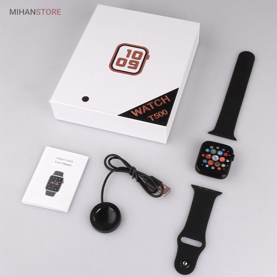 ساعت هوشمند مدل T500 یکی از بهترین مدل های موجود که به نسخه اصلی شباهت زیادی دارد میباشد.  ساعت هوشمند مدل T500 دارای طراحی بدنه بسیار زیبا و ساده ای است که فرم مستطیلی دارد همراه با بند های سیلیکون که جذابیت ساعت را چندین برابر کرده است این ساعت کاملا لمسی میباشد که تمام صفحه نیست و حاشیه دارد.  از مزیت های قابل ذکر این محصول میتوانیم با قابلیت اتصال به بلوتوث جهت همسان سازی با گوشی اشاره کنیم،ساعت هوشمند مدل T500و با وجود دارا بودن حسگر شتاب سنج،قابلیت رد تماس،تنظیم هشدار روزانه،ژیروسکوپ و شمارنده ضربان قلب،تعیین اهداف ورزشی و..جذابیت ساعت را بیشتر کرده است.  همچنین این ساعت به تمامی دستگاه های اندرویدی وIos متصل خواهد شد،این گجت هوشمند توسط یک کابل مغناطیسی شارژ میشود.