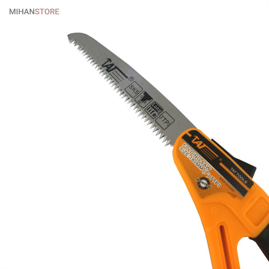 اره یکی از ابزارها مهم در باغ و منزل است که به کمک آن شاخه‌های خشکیده و شاخه‌هایی که بیش از حد بالا رفته‌اند یا پایین درختان زده شده را هرس می‌کنید تا درخت شاخه جدید بزند و رشد آن سریع تر شود. علاوه بر این اره تاشو تات در کمپینگ و مسافرت‌ها نیز به کار می‌آید و با توجه به اینکه اندازه مناسبی دارد و فضای بسیار کمی می‌گیرد می‌توانید در کیف کمپ خود قرار دهید و به کمک آن هیزم‌ها و چوب‌ها را برای روشن کردن آتش خرد و تکه تکه کنید.اره تاشو TAT ساخت چین و طول کلی آن ۴۰ سانتی‌متر که تیغه آن ۱۸ سانتی‌متر و دسته اره تاشو ۲۲ سانتی‌متر است. دسته این اره از جنس پلاستیک است و با روکشی که دارد از تعریق دست تا حدودی جلوگیری می‌کند.مزیت این اره تاشو باغبانی نسبت به بقیه مدل‌ها در این است که به سهولت جمع می‌شود و فضای بسیار کمی را اشغال می‌کند. هنگامی که اره تاشو را باز می‌کنید و می‌خواهید از آن استفاده کنید، یک قفل روی اره قرار دارد که باید به‌وسیله آن تیغه اره تاشو را قفل کنید تا به یک اره معمولی در زمان کار تبدیل شود. وجود این قفل روی اره تاشو تات بسیار مهم و ضروری است و باعث می‌شود که در حین کار اره تا نشود و به راحتی و با اطمینان بالا بتوانید از آن استفاده کنید.