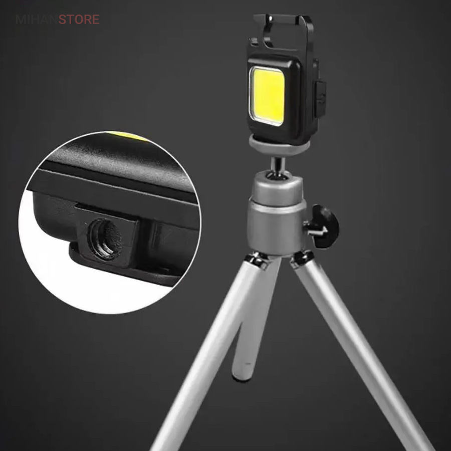 مینی چراغ پر قدرت چندکاره COB محصول کاربردی برای استفاده در کمپینگ و مسافرت های بیرون شهری حتی داخل منزل است. این مدل پروژکتور با طراحی و کیفیت عالی خود در مسافرت ها و گردشگری و همچنین درموارد اضطراری همچون نبودن برق, به سهولت مورد استفاده قرار میگرد. این پروژکتور COB با سه حالت نوردهی بصورت ثابت (پر نور , کم نور) و چشمک زن (SOS) محیط اطراف خود را به طور کامل روشن می کند. در پشت این محصول یک آهنربا پر قدرت و یک دسته تعبیه شده است که طراحی آهنربا به این محصول اجازه می دهد تا به هر فلزی متصل شود شما میتوانید به سرعت آن را به یک سطح فلزی، حتی وارونه (مثلاً به سقف یا کاپوت ماشین) متصل کنید و دسته قابل تاشو 180 درجه اجازه می دهد تا لامپ در زوایای مختلف قرار گیرد یا در  مکان های خاصی آویزان شود ومحیط را کاملا روشن کند.