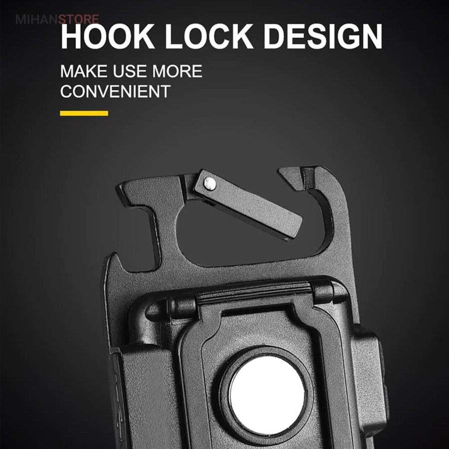 وقتی زمان شارژ  مجدد فرا می رسد، کافی است آن را به هر منبع تغذیه USB وصل کنید. این چراغ  قوه شارژی USB توسط یک باتری داخلی قابل شارژ با ظرفیت 500 میلی آمپر  ساعت، کابل شارژ تایپ C به USB تغذیه می شود. معمولاً حدود 2 ساعت طول  می کشد تا کاملاً شارژ شود. پایه آهنربایی  قوی و دسته قابل چرخش به شما امکان می دهد در حین کار دستان خود را رها  کنید. طراحی آهنربا به لامپ اجازه می دهد تا به هر فلزی متصل شود و دسته  قابل تاشو 180 درجه اجازه می دهد تا لامپ در زوایای مختلف قرار گیرد یا در  مکان های خاصی آویزان شود.این چراغ قوه  جاکلیدی می تواند نورهایی با حداکثر 800 لومن ساطع کند. این یک نور روشن با  زاویه گسترده ارائه می دهد. LED فنی بزرگ COB اجازه می دهد تا از این چراغ  به عنوان چراغ کار کوچک و چراغ اضطراری استفاده شود. چراغ قوه قابل حمل دارای کارابینی است که به راحتی به حلقه کلید یا کیف وصل می شود و در  برابر آب و ضربه مقاوم است. از طرف دیگر، بطری بازکن خوبی است. شما می  توانید از آن در سناریوهای مختلفی مانند کمپینگ، پیاده روی سگ، جستجوی  چیزها، تعمیر استفاده کنید.