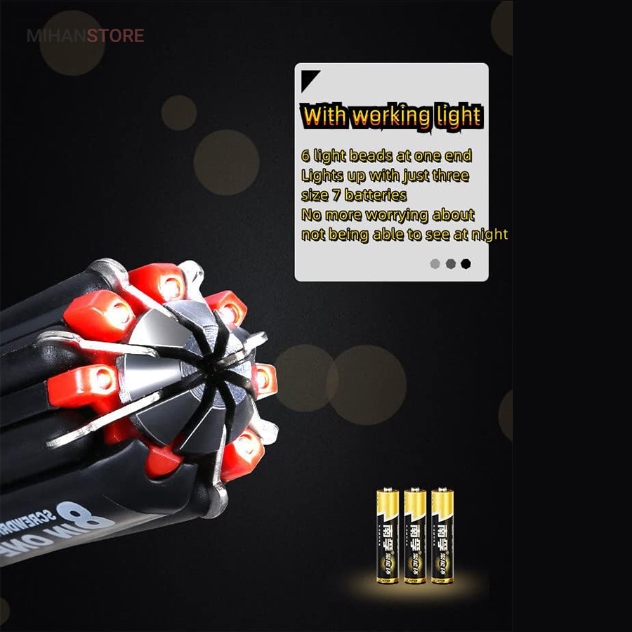 ویژگی های پیچ گوشتی 8 کاره چراغ قوه دار: