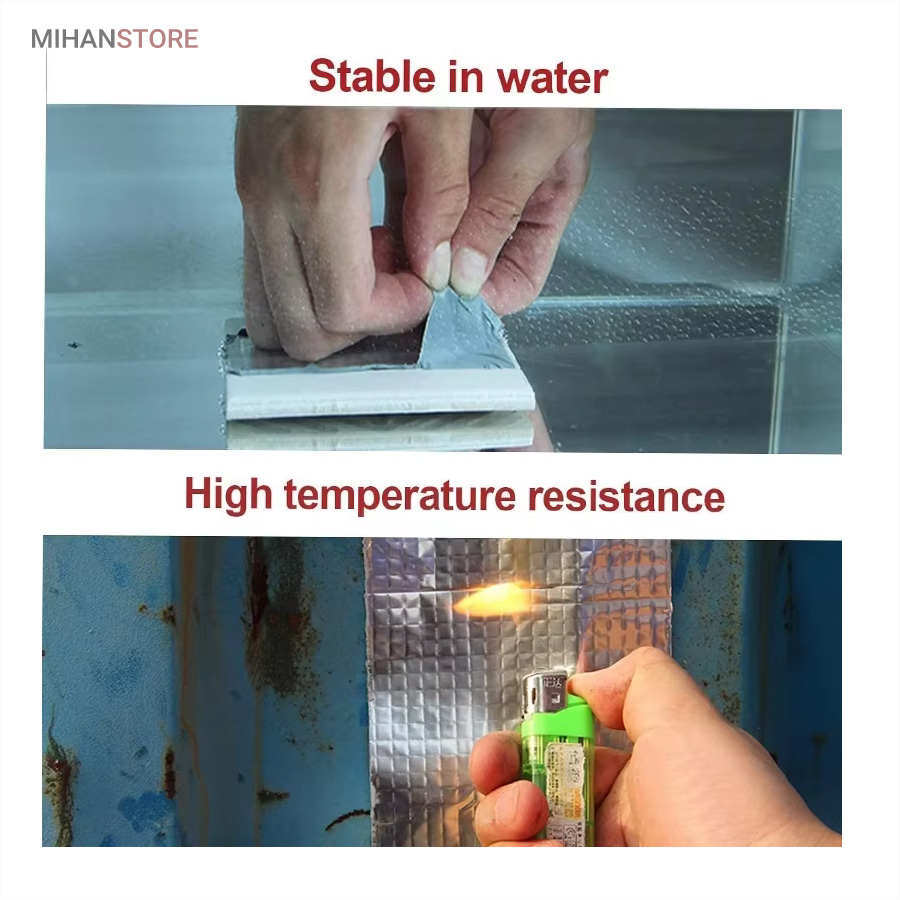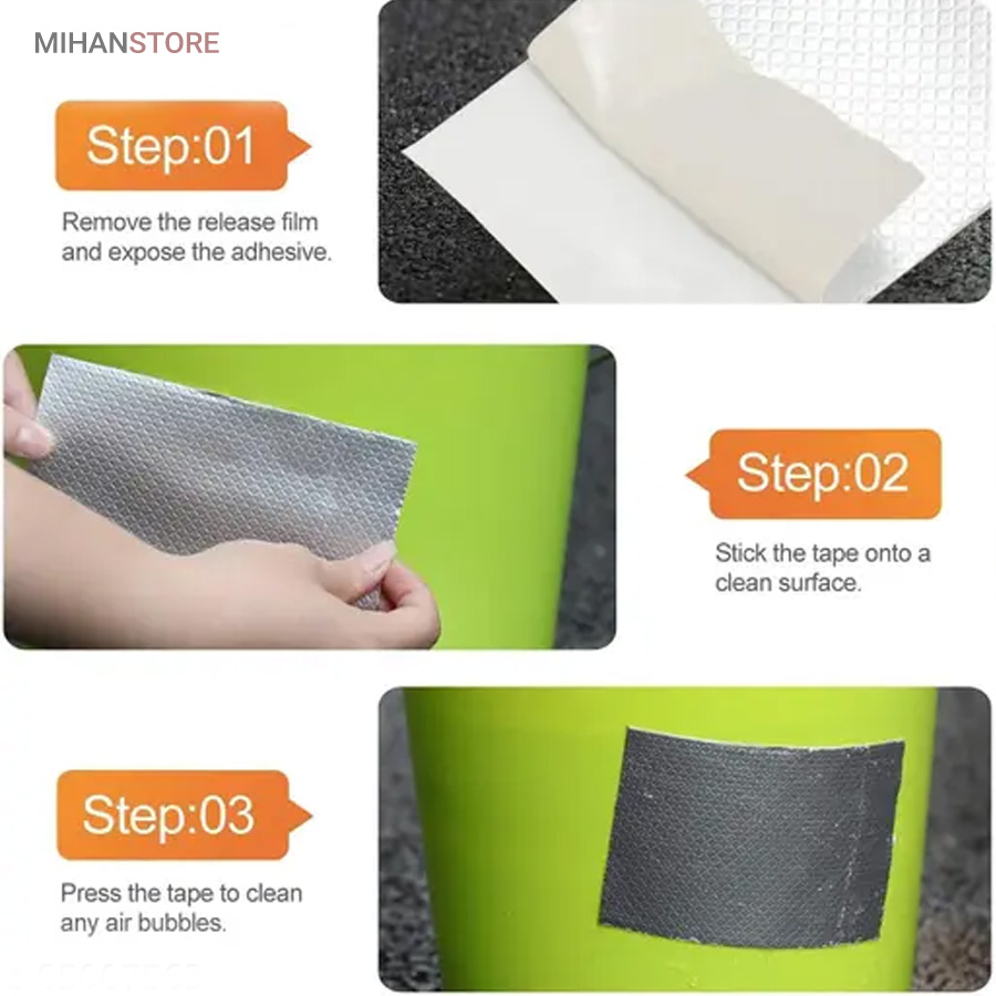 چسب آب بندی نواری نمونه ای جدید از ابزار پوشش محسوب می شود که دارای سطح رویین شبکه ای به رنگ نقره ای می باشد ، خصوصیتی که زیبایی ظاهری را برای آن تا حدی پدید آورده ، به طوری که بتوان از کالا در بیشتر موقعیت های مکانی بدون نگرانی از تخریب شکل ظاهری استفاده نمود . سطح زیرین محصول ، لایه ای چسبی وجود دارد که چسبندگی بسیار خوبی را دارا است ، به طوری که به اغلب سطوح می توان آن را چسباند و استفاده کرد ، البته با دقت به این موضوع که بهترین عملکرد برای کالا روی سطح یکدست (مسطح) ، بدون برجستگی است . پهنای چسب درزگیر ، 5 سانتی متر با طول 5 متر می باشد که می توانید از آن برای پوشش ترک سطوح مختلف استفاده کنید ، کافی است سطح مورد نظر را تمیز کنید و در نهایت برچسب را روی منافذ ، ترک و یا شیار مورد نظر به خوبی بچسبانید به طوری که کامل آن پوشش دهد . برچسب آب بندی ، مقاومت لازم در برابر آب را نیز دارد بنابراین کمترین محدودیت ممکن در استفاده از آن را خواهید داشت .
