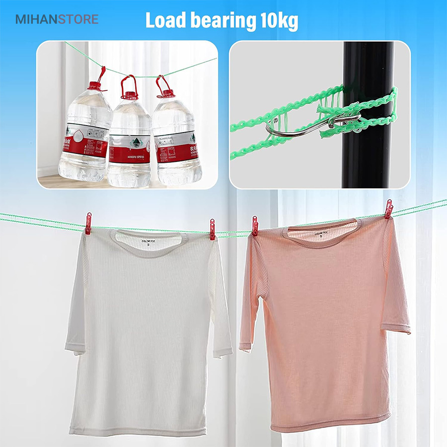 بند رخت بسیار بادوام در فضای باز، محکم و بادوام، طراحی نرده مانند منحصر به فرد باعث می شود لباس های شما سر نخورده و در یک جا جمع نشود، می توانید به راحتی انواع لباس ملحفه و اجسام سنگین را آویزان کنید.این محصول دارای دو قلاب استیل ضد زنگ به راحتی قابل نصب است و می توانید طول آن را بر اساس نیاز خود تنظیم کنید.گیره از فولاد ضد زنگ ساخته شده است که نسبت به رخت آویز سنتی بادوام تر، عمر طولانی تر، انعطاف پذیری بالا و ویژگی منحصر به فرد این محصول بعد از استفاده میتوانید جمع کنید که بعد از جمع شدن فضای حدودی 4 سانتی متر را اشغال میکند.