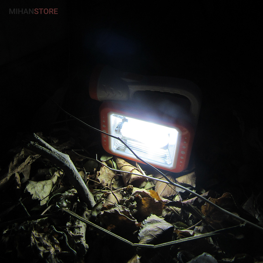 در ابتدا باید بگوییم که چراغ خورشیدی اضطراری قابل شارژ Searchlight Lamp از دو قطعه که شامل چراغ روشنایی COB و LED و پنل خورشیدی تشکیل شده است. اولین بخش این محصول، چراغ قوه بسیار قوی که پرتاب نور قابل توجهی را دارد است دومین بخش چراغ کنار که فضای بیشتری را روشن میکند که در ابعاد12*12 سانتی متر با وزن سبک طراحی شده است. همین وزن سبک و ابعاد جمع و جور یک ویژگی مثبت برای چراغ روشنایی اضطراری محسوب می شود که خیلی راحت می توانید آن را با خود حمل کنید. ویژگی قابل توجه این است که شما اگر در کمپ هستید و دسترسی به برق ندارید این چراق دارای پنل خورشیدی است و خود به خود به وسیله نور خورشید شارژ میشود و شب براحتی قابل استفاده میباشد.و این محصول قابلیت شارژ از طریق برق شهری را هم دارد و همراه چراغ کابل شارژ نیز ارسال میشود.