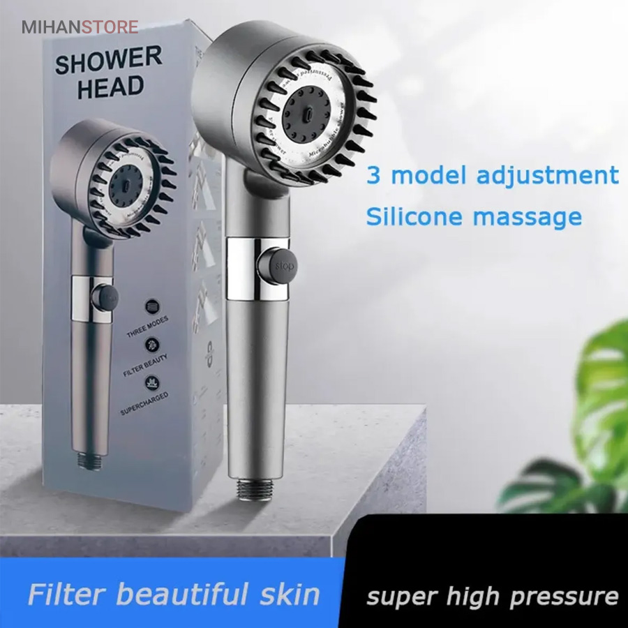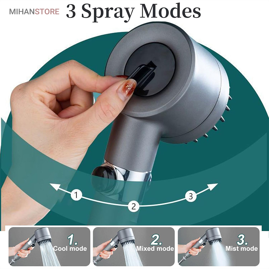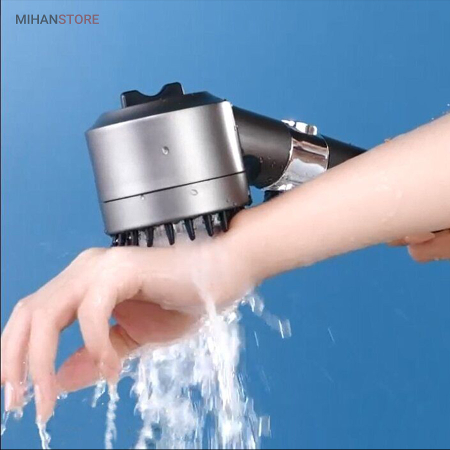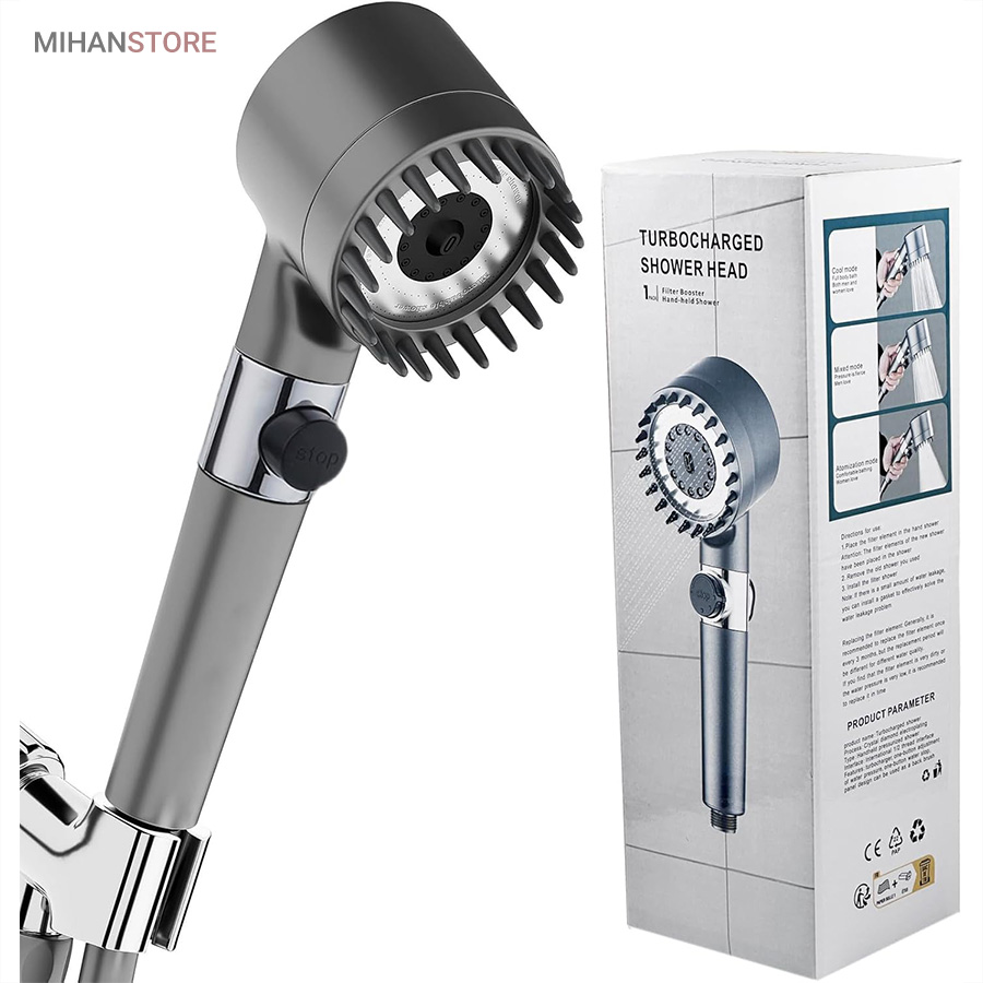 این محصول از جدیدترین و با کیفیت ترین سردوش هایی است که اخیرا روانه بازار ایران شده است. این سردوش دارای 3 حالت پاشش آب میباشد که از جدید ترین تکنولوژی افزایش فشار آب بهره می برد. بر روی دسته دارای دکمه قطع و وصل جریان آب است. همچنین دارای فیلتر الیافی جهت تصفیه آب می باشد و دارای یک ردیف برس سیلیکونی جهت ماساژ پوست بدن و سر می باشد تا تجربه ای لذت بخش از دوش داشته باشید. جهت شست شوی حمام میتوانید سری را جدا کرده و از دسته به عنوان سری پرفشار شلنگ جهت شست شوی سطوح حمام استفاده نمایید.مهم ترین خصوصیت این سردوش دندانه های سیلیکونی سر دوش میباشد که میتوانید به عنوان ماساژور سر و لیف زدن روی پوست استفاده کنید.