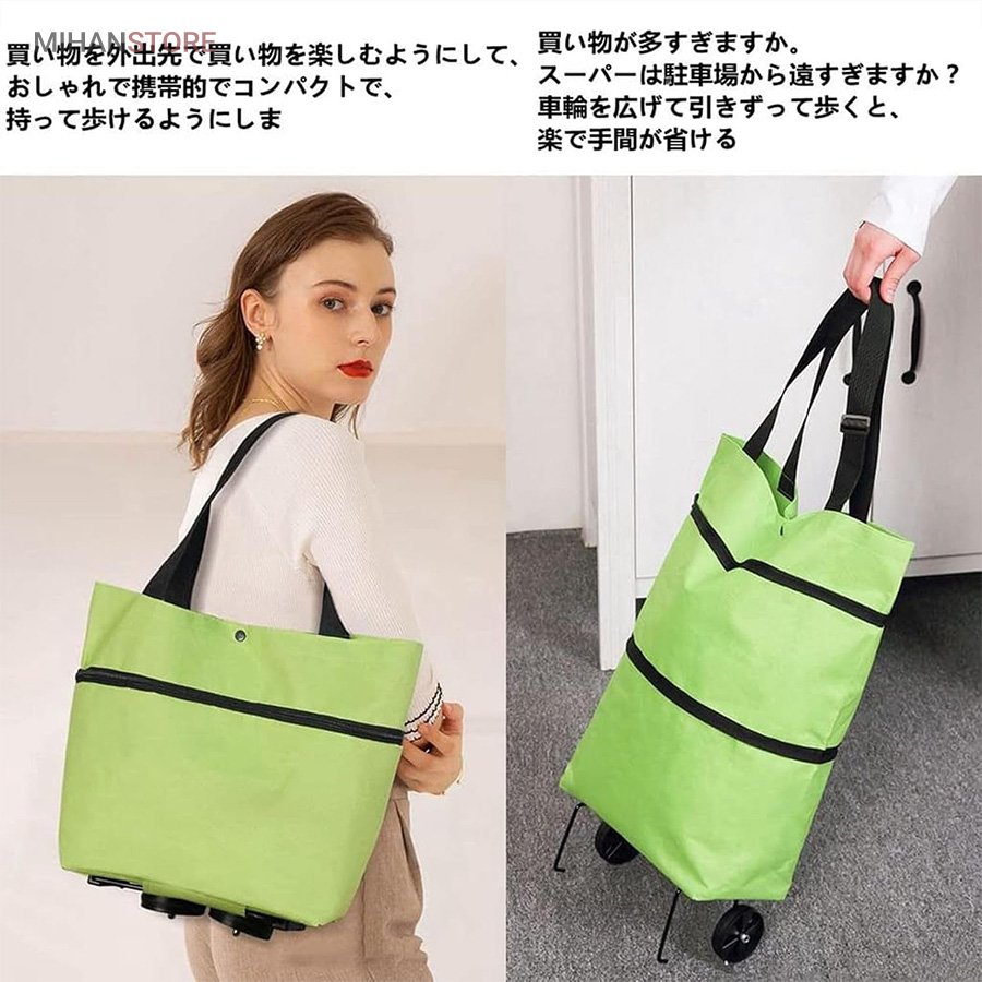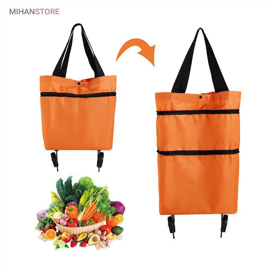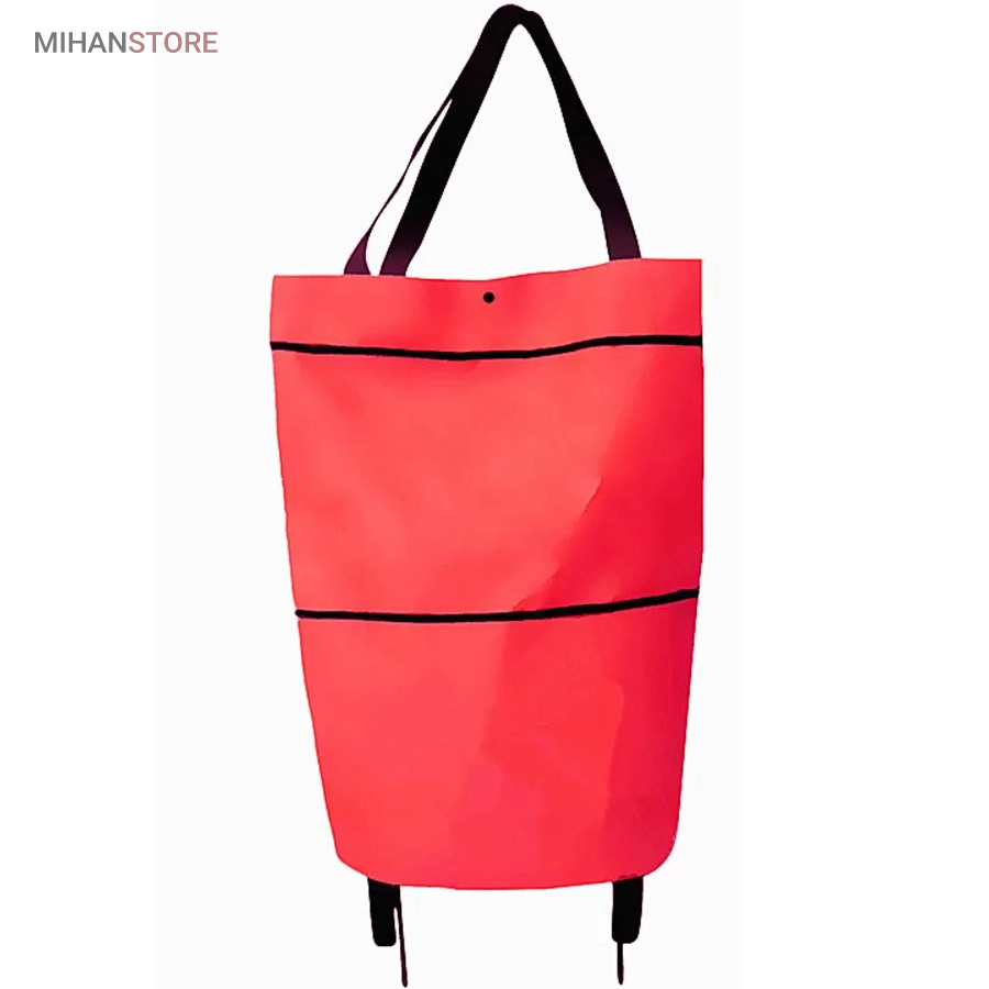 کیف خرید چرخدار تاشو دارای چرخ‌هایی است که به شما کمک می‌کند بدون اینکه وزن خریدتان را بر روی شانه‌ها یا دست‌های خود احساس کنید، خریدتان را به‌راحتی حمل کنید. برای استفاده از ساک خرید در حالت چرخدار، کمی تایرها را به سمت عقب کشیده تا از محل خود خارج شوند و در حالت چرخدار از ساک خرید استفاده کنید.