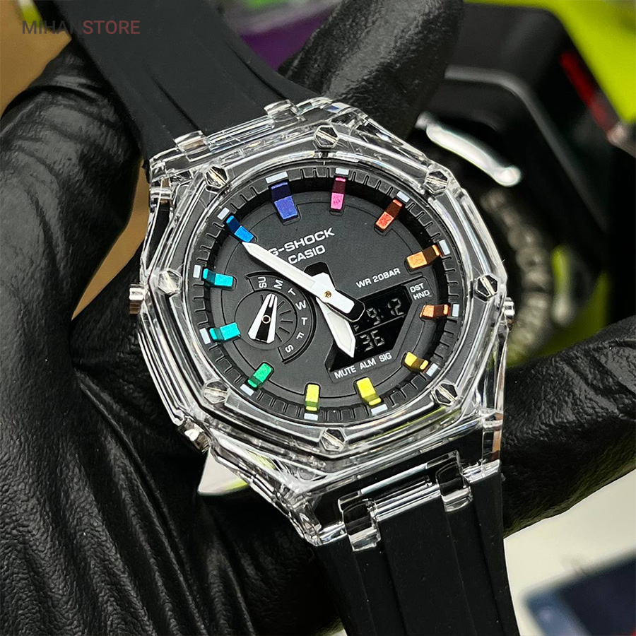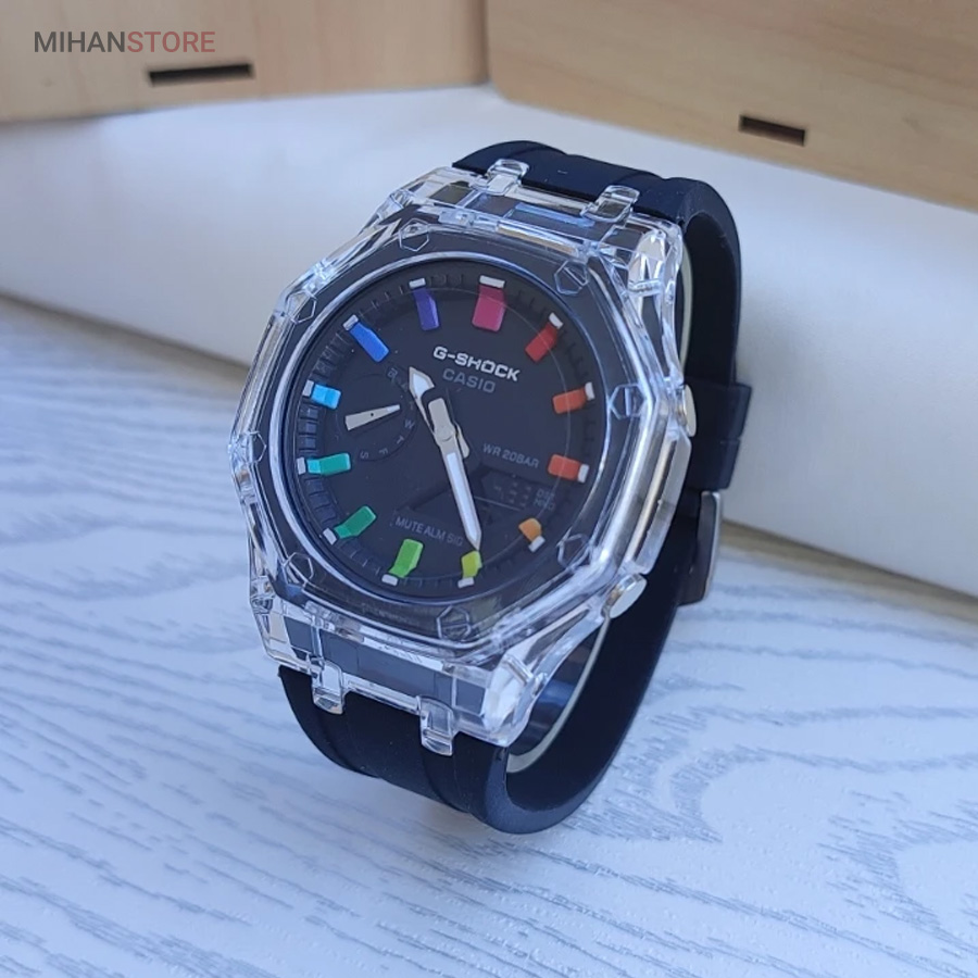 یکی از بهترین ساعت هایی که کمپانی کاسیو تولید می‌کند و از زمانی که ساعت‌های کالکشن جی شاک به بازار معرفی شد ساعت جی شاک مدل GA2100 می باشد، کاسیو برای بار دیگر کاربران خود را به چالش کشید. مدل های جی شاک ، با ظاهر و طراحی مقاوم و منحصر به فرد خود، به محبوبیت بین المللی در بین جوانان رسید. ساعت‌هایی با قدرت ضربه‌پذیری بالا، مقاومت بالا در برابر آب و ضربات محکم که توانست نظر بسیاری از افراد را به خود جلب کند. ساعت مچی جی شاک دارای بند رابر مشکی خاص وموتور باکیفیت ژاپن وبدنه استیل وقاب شیشه ای جذاب است که بهترین انتخاب افراد خاص پسند می باشد.