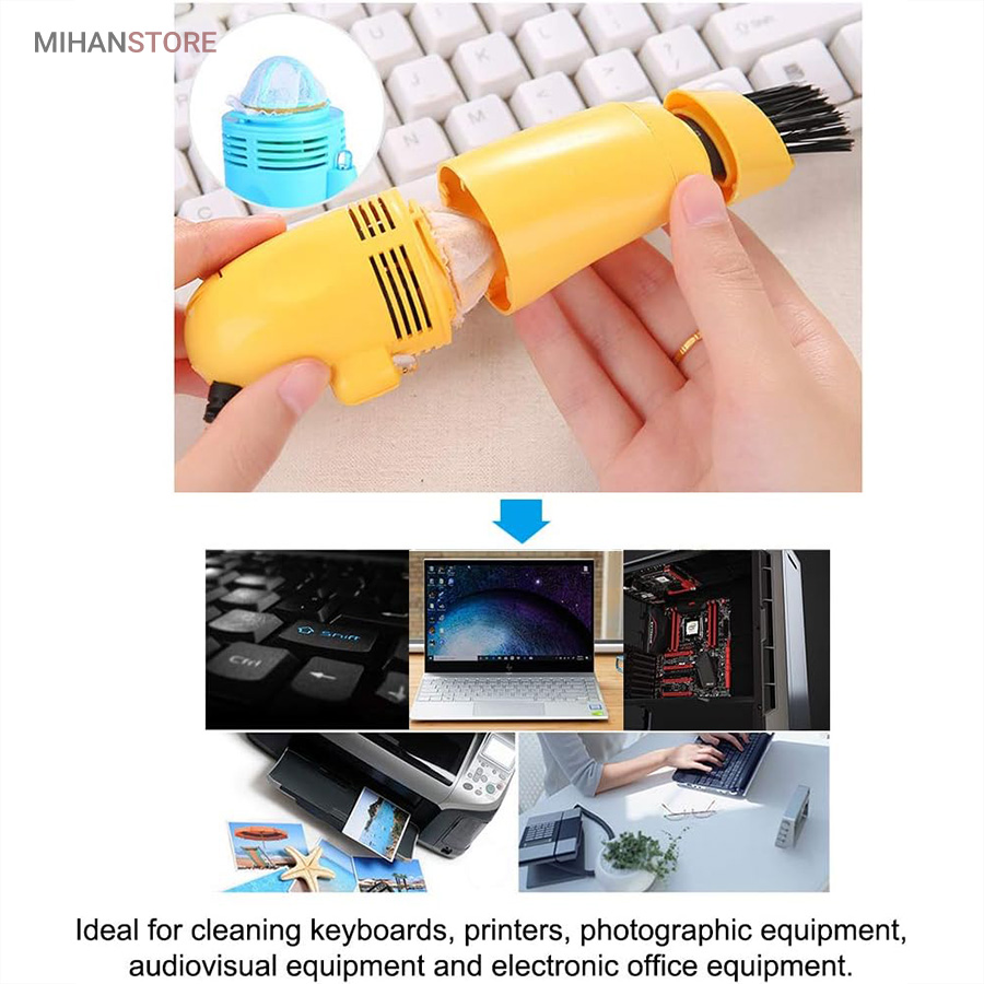 Computer Mini Vacuum یا همون جارو USB. با کمک این جارو کوچیک می تونید گرد و غبار بین کلید های کیبورد یا منافذ خاک گرفته کامپیوتر و یا مانیتور رو تمیز کنید. از اون جایی که بدون باتری و با کابل USB کار میکنه خیلی انتظار مکش قوی نداشته باشید چون فقط برای جمع آوری گرد و غبار مناسبه.  دو تا سری متفاوت هم داره که یکیش از پلاستیک نرم و انعطاف پذیره تا به راحتی جاهایی مثل بین کلید های کیبورد رو تمیز کنه و سری دیگه هم که دارای برس هست می تونه به جمع آوری تکه های بزرگتر کمک کنه.