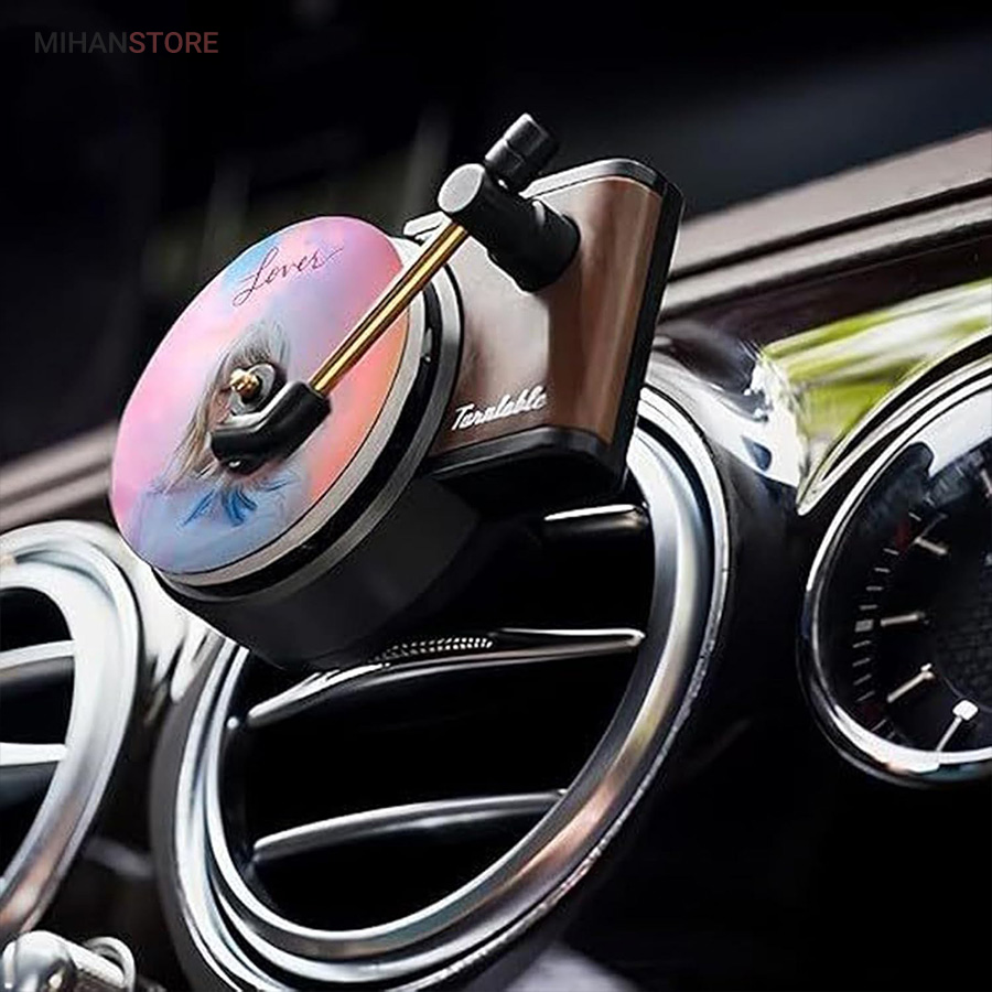 خوشبو کننده داخل خودرو یکی از وسیله های مورد نیاز داخل خودرو است که هم باعث تغییر بوی داخل خودرو میشود هم باعث زیبا تر شدن فضای داخلی خودرو میشود اگر این محصول تزیینی باشد . این محصول در دریچه کولر خودرو نصب میشود و طرح گرامافون دارد که حس نوستالژیکی به داخل خودرو میدهد . با ورود باد کولر یا بخاری به این محصول صفحه روی آن شروع به چرخش میکند همانند یک گرامافون قدیمی . داخل بسته بندی محصول قرص خوشبو کننده قرار دارد که روی صفحه مشکی وسط قرار میگیرد . بعد از اتمام پخش بوی آن میتوایند از هر عطر و ادکلنی که مورد پسند شما است روی آن اسپری کرده و مجدد استفاده کنید .