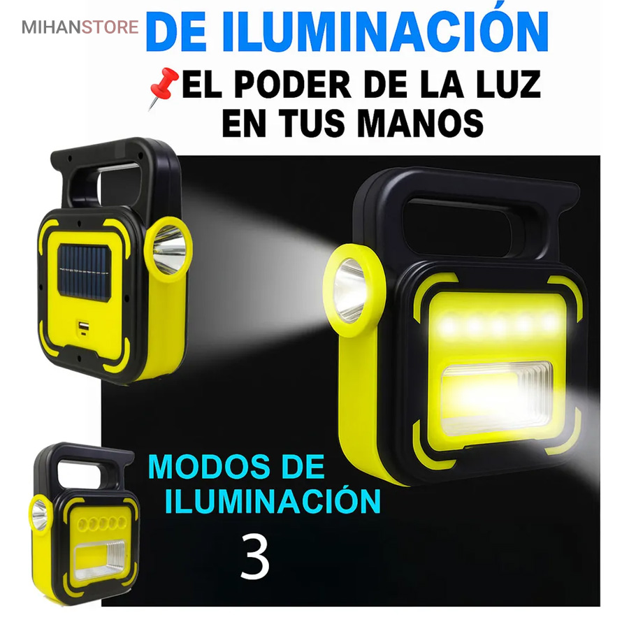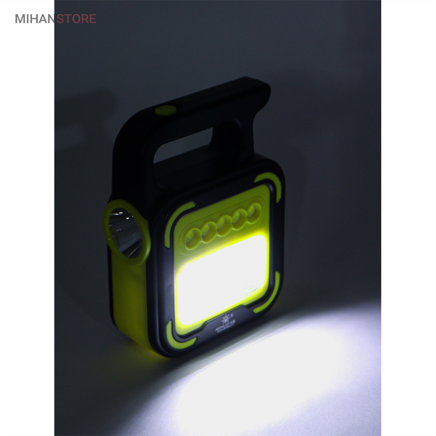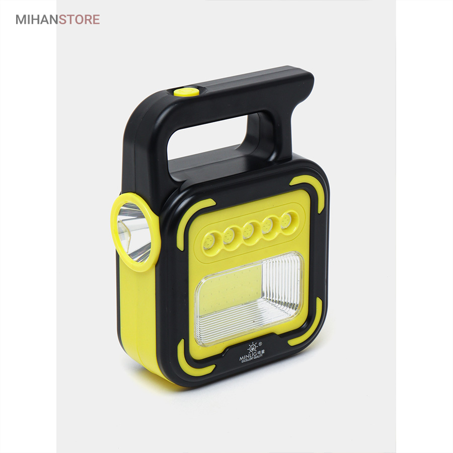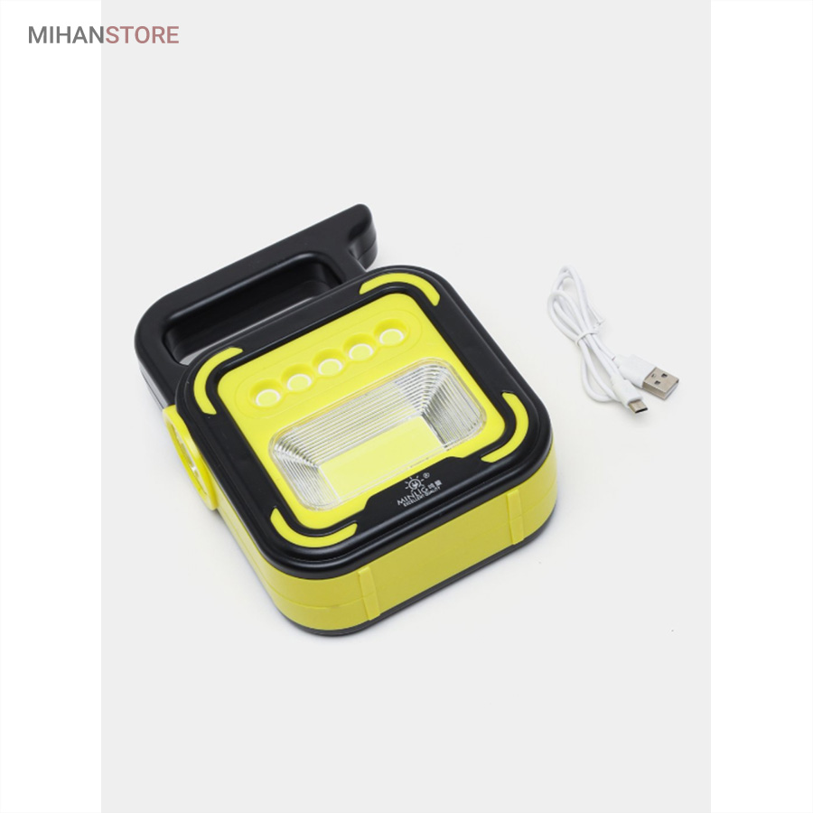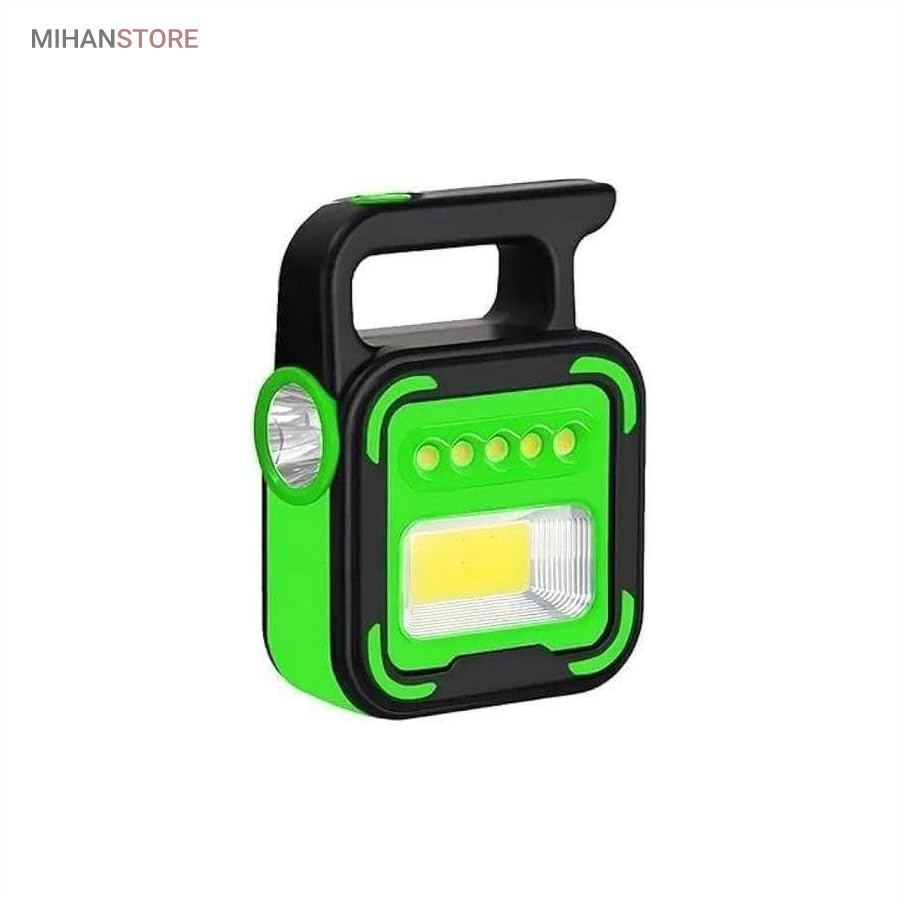 یک وسیله با چندکارایی جالب می باشد. جنس بدنه چراغ کار از ABS و مقاوم در برابر ضربه می باشد. چراغ و پروژکتور اضطراری دارای پاوربانک دارای 4 حالت نوردهی که شامل: چراغ قوه سفید و چراغ قوه آفتابی با  نور زرد و چراغ جانبی قوی COB شش چراغه با نور  قوی و چراغ جانبی کوچک میباشد. چراغ کار چند کاره دارای ویژگی هایی چون: دست گیره، قابلیت شارژ با برق شهری و نور خورشید، و خروجی USB برای شارژ موبایل می باشد.