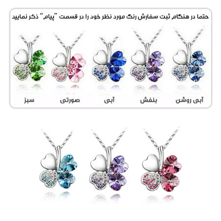 گردنبند کریستال یکی از جدیدترین و شیک ترین گردنبندهای عرضه شده در جهان می باشد. این گردنبند در 5 رنگ استثنایی و شیک (آبی روشن، بنفش، آبی، صورتی و سبز) عرضه شده است که همراه با یک زنجیر ظریف ارائه می شود. شما می توانید در هنگام ثبت سفارش رنگ مورد نظر خود را در قسمت "پیام" ذکر نمایید. به کار بردن نگین های درخشان و با کیفیت در این گردنبند زیبایی این محصول را دو چندان کرده است. این گردنبند ساخت کشور کره بوده و دارای ضمانت ماندگاری رنگ می باشد. هم اکنون می توانید این محصول را با قیمت استثنایی از فروشگاه میهن استور سفارش دهید.