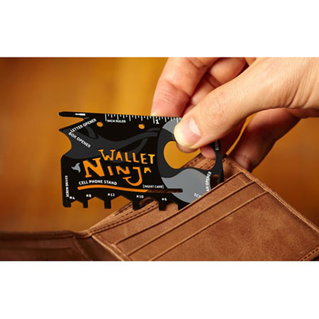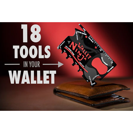 آچار همه کاره نینجا والت و یا همان کارت 18 کاره نینجا والت محصول جدید و بی نظیری می باشد که با طراحی بی نظیر خود حیرت همگان را برانگیخته است. با این آچار كه در سايز يک كارت عابر بانک مي باشد می توانید هر چیزی که می خواهید را به راحتی هر چه تمام تر باز کنید. از سر كنسروجات گرفته تا مهره های درشت و یا خیلی ریز. با اين محصول مي توانيد سر نوشابه را با يک چشم به هم زدن باز كنيد. کارت نینجا والت بهترین وسیله برای تمام افراد به خصوص تعمیر کاران می باشد، با این وسیله دیگر شما نیاز به حمل و نگهداری آچار های سنگین و گران قیمت ندارید.