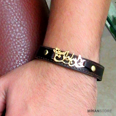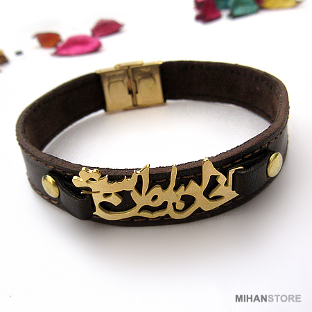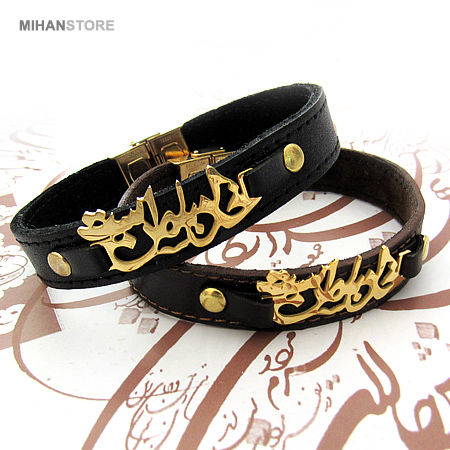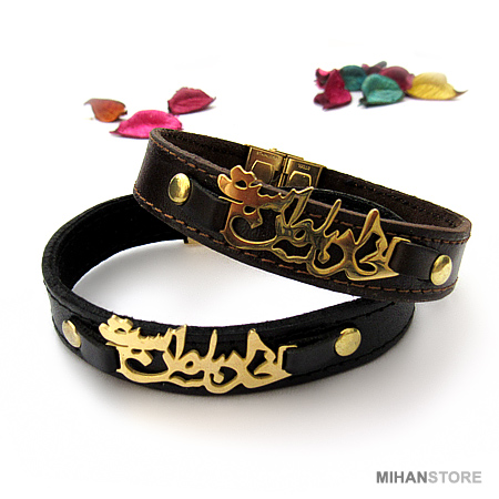 دستبند چرمی طرح خدا با من است با دو رنگ قهوه‌ای و مشکی و پلاک نازک طلایی رنگ خدا با من است نمونه‌ای از زیورهای ساده و در عین حال پرطرفدار از جانب آقایان و خانوم ها است که با اکثر رنگ‌های لباس همخوانی داشته و در عین حال متفاوت دیده می‌شود. این دستبندها مناسب ترین هدیه برای زوج های جوان است.